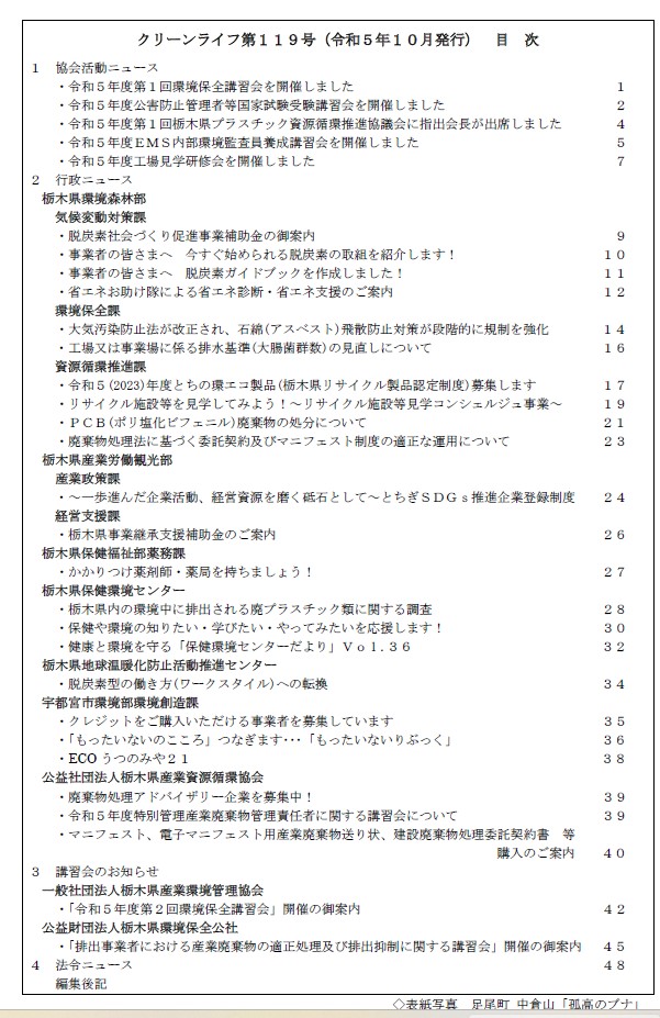1 クリーンライフ第118号の発刊にあたって(指出会長)